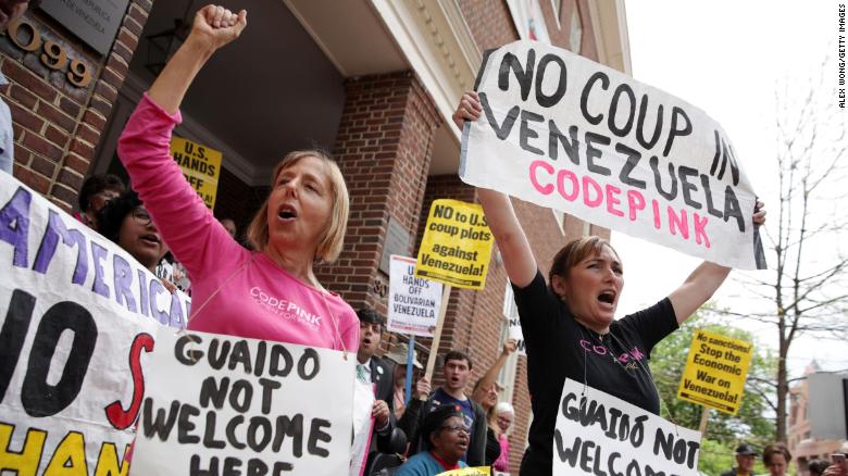 Medea Benjamin, one of the founders of the anti-war group Code Pink, previously told CNN that diplomats from the government of Venezuelan President Nicolas Maduro had given them access to the embassy before the diplomats left as the standoff unfolded between Maduro and Venezuelan opposition leader and self-proclaimed interim President Juan Guaido.