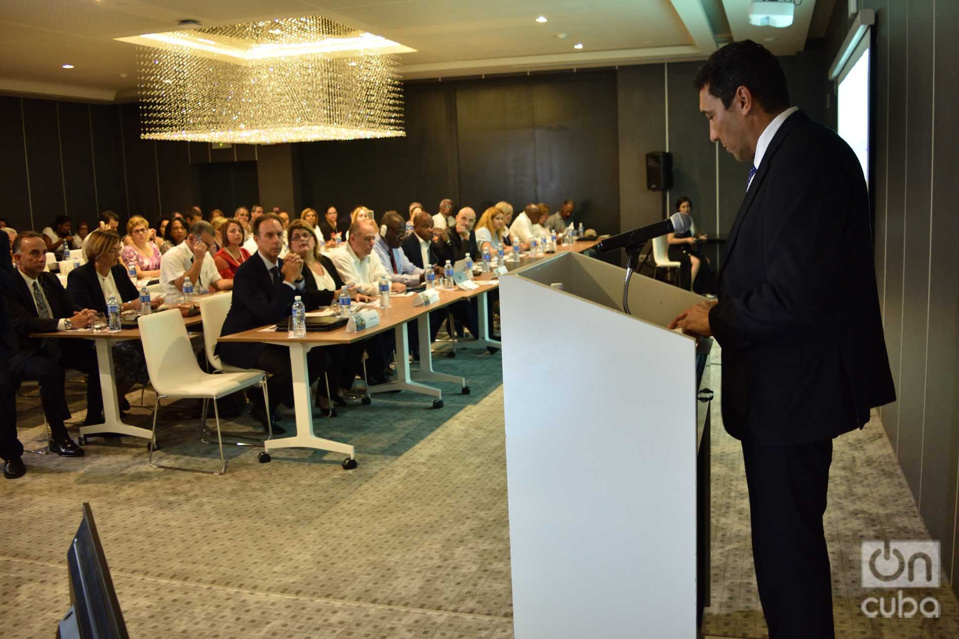 Cuban Minister of Transportation Eduardo Rodríguez at the opening of the event on air transport at the Iberostar Grand Packard Hotel in Havana, on May 22, 2019. Photo: Otmaro Rodríguez.