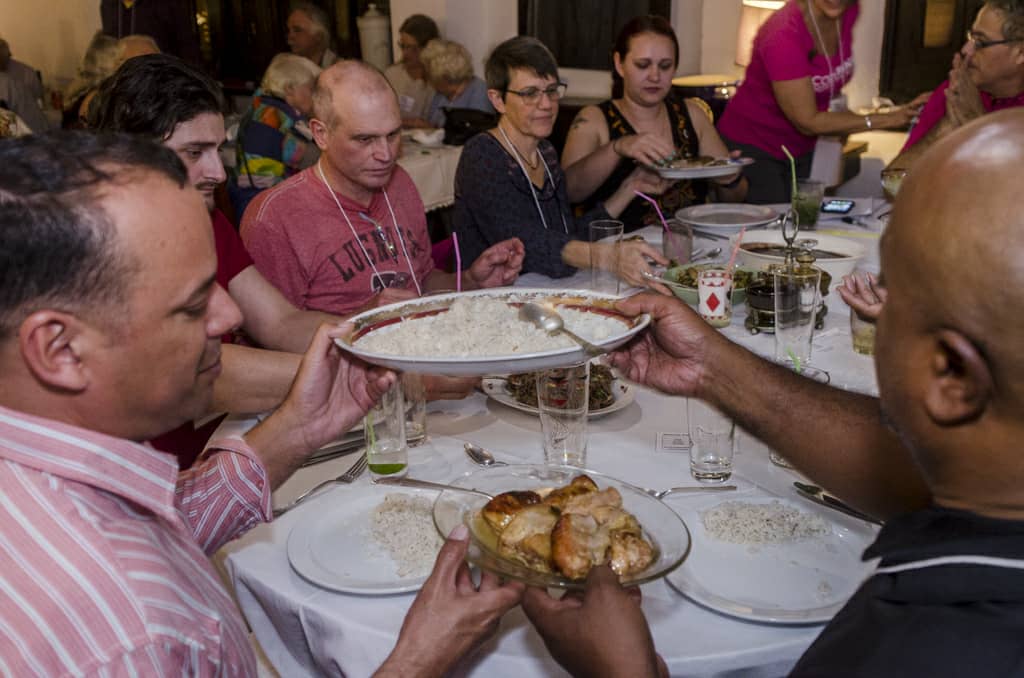 During dinner we were able to talk briefly with Sharon Wrobel, director of ProximityCuba’s board, passionate foodie and an expert in Cuba. She gave us her opinion about the importance of CODEPINK ‘s visit to our country especially when the relations between U.S and Cuba are in crisis. She also commented on the culinary experience the group will be living during the week. “Having a group so prestigious and so big will definitely bring attention. The American people will see that they can still travel to Cuba legally and safely and they will witness how Trump’s policy towards Cuba has affected the Cuban people […]. Five years ago we were optimistic and at Proximity we were even worried about the tsunami of visitors from the U.S. Now under Trump the tsunami has become a drought. This CODEPINK group is a reminder that there are still people supporting Cuba in the U.S. and because of that we can still have faith…things will get better […]. The visits to all these paladares will definitely be an enriching experience for the group. Some places have more like an experimental cuisine but always keeping something of the traditional Cuban food. In my first visit to Cuba with students we used to say that “we were not here for the food,” however a year ago, we at Proximity had a very succesful culinary tour. It is incredible how things have changed and now the food is a very important part of every program”.